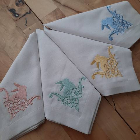 Nicro New Creative Custom Bunny Square Cotton Linen Cloth Napkin Happy Easter Party Luxury Embroidery Rabbit Table Decorations