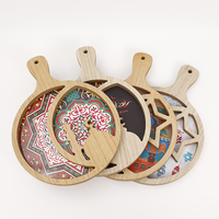 Nicro Original Factory Round Wooden Serving Tray With Handle Islamic Muslim Eid Mubarak Festival Table Plates Ramadan Decoration