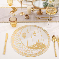 Nicro Wholesale Price Eid Mubarak Gift for Dining 38cm Gold PVC Waterproof Table Cover Round Placemats Ranadan Party Decoration